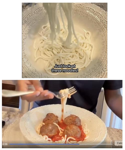 from her video where she made this big bowl of spaghetti and meatballs with these Miracle Egg White Noodles.