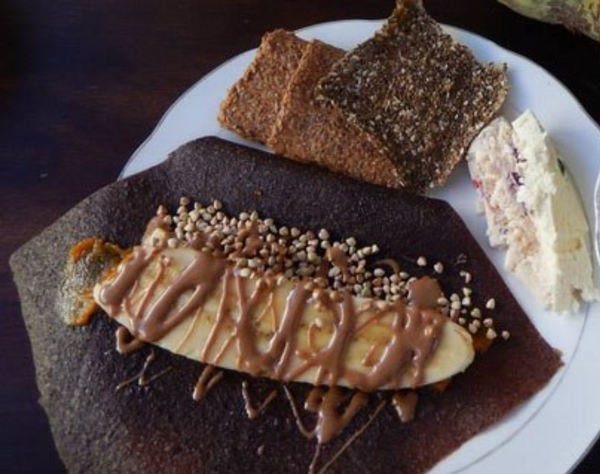 The breakfast buffet's are my absolute favorite. We have different flavored crepes made out of apples or bananas with flax and Superfoods, which you can fill up with tropical fruit, seed toppings, cacao nibs, nut creams, and so many other toppings. Smoothies, chia pudding, salads, and many other options will be
