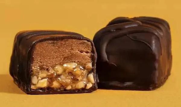 For the chewy part, they make a maca and lucuma nougat. Then they add a layer of whipped cashew