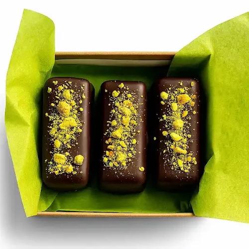 Instead of two 1oz bars in each box, the Raw Dubai Chocolate Boxes have three larger bars weighing at 1.6 oz for each bar, as seen in the