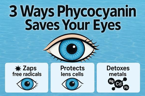 eye cells from dying). In this study, phycocyanin significantly reduces the cataractogenic process (what causes cataracts) and protects the eye lens, liver, and kidneys from damage.